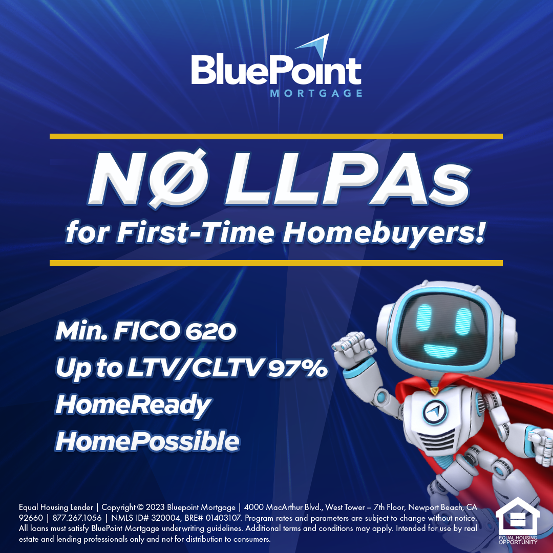 HomeReady® and Home Possible® available, flexible funding options, waived LLPAs for first-time homebuyers, restrictions apply.