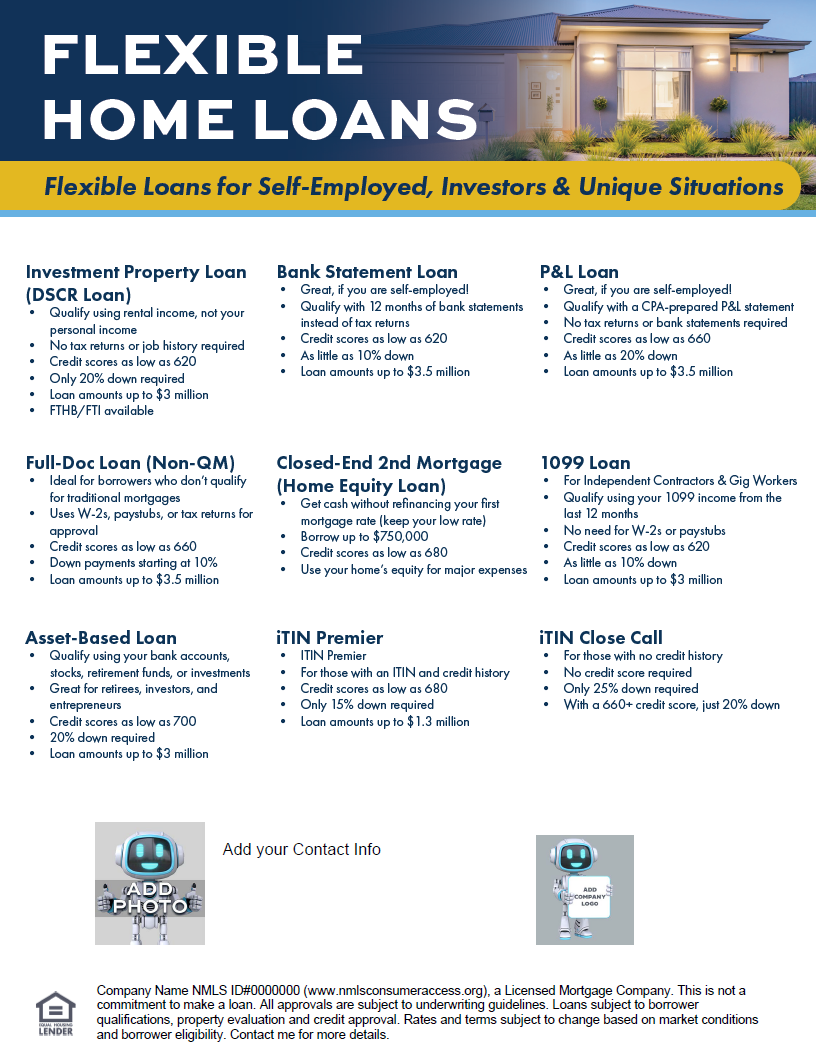 BluePoint Mortgage is providing accurate information about its products only. By downloading these materials, you agree that you are responsible for having your own legal/compliance team review and revise, including adding any necessary state or federal disclaimers and/or licensing information. You agree BPM is not giving you legal advice and/or representing that this document complies with any advertising or licensing laws.